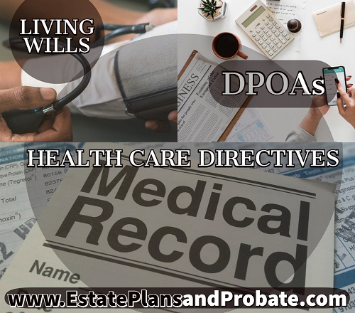 Health Care Directives are documents that specify the type of medical care you would want or do not want in the event you are unable to communicate your wishes, and appoints an agent to act on your behalf. There are three types of advanced medical directives. These Directives includes: Designation of Health Care Surrogate, Living Wills, and DNR (Do Not Resuscitate) orders.